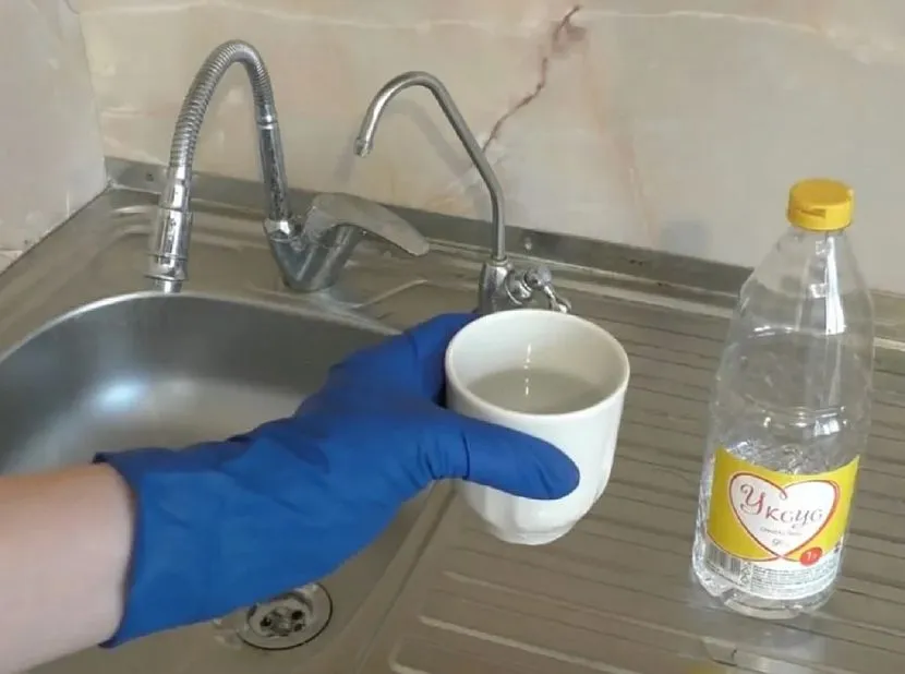 Кислая среда поможет избавить от тонкого известкового слоя на хромированном кране, полотенцесушителе или мебельных элементах. Теплый раствор распределяют при помощи пульверизатора или наносят губкой. Процедуру повторяют каждые 15 минут. Через час поверхности протирают влажной тряпкой.