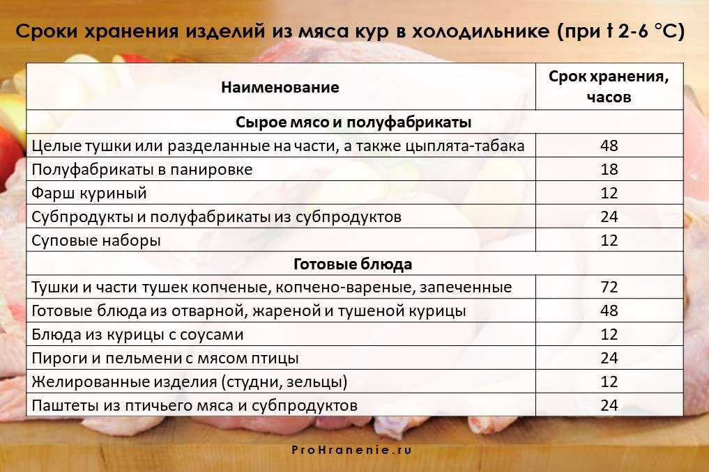 Сроки хранения продуктов из куриного мяса по СанПиНу