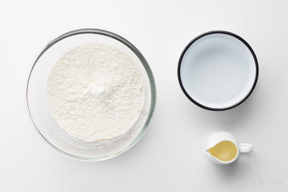 - В составе простого теста содержится только мука, вода, масло и соль.