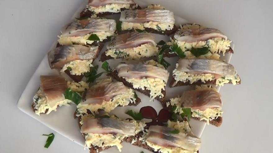 Еще одной желанной закуской для праздничного стола является бутерброд со слабосоленой селедкой. Этот пикантный вариант поедают в первую очередь, потому что он яркий и аппетитный. Для подобного лакомства настоятельно рекомендуется применять черный бородинский хлеб.