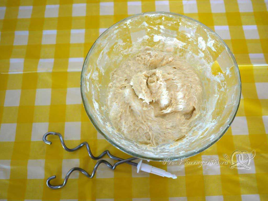 Вымешиваем мучную основу до однородности, я использую для этого миксер с насадками для теста.