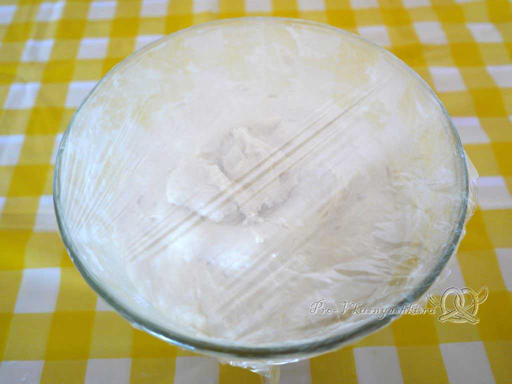 Накрываем миску пленкой и убираем в теплое место на 40-45 мин. Пока можно заняться своими делами…