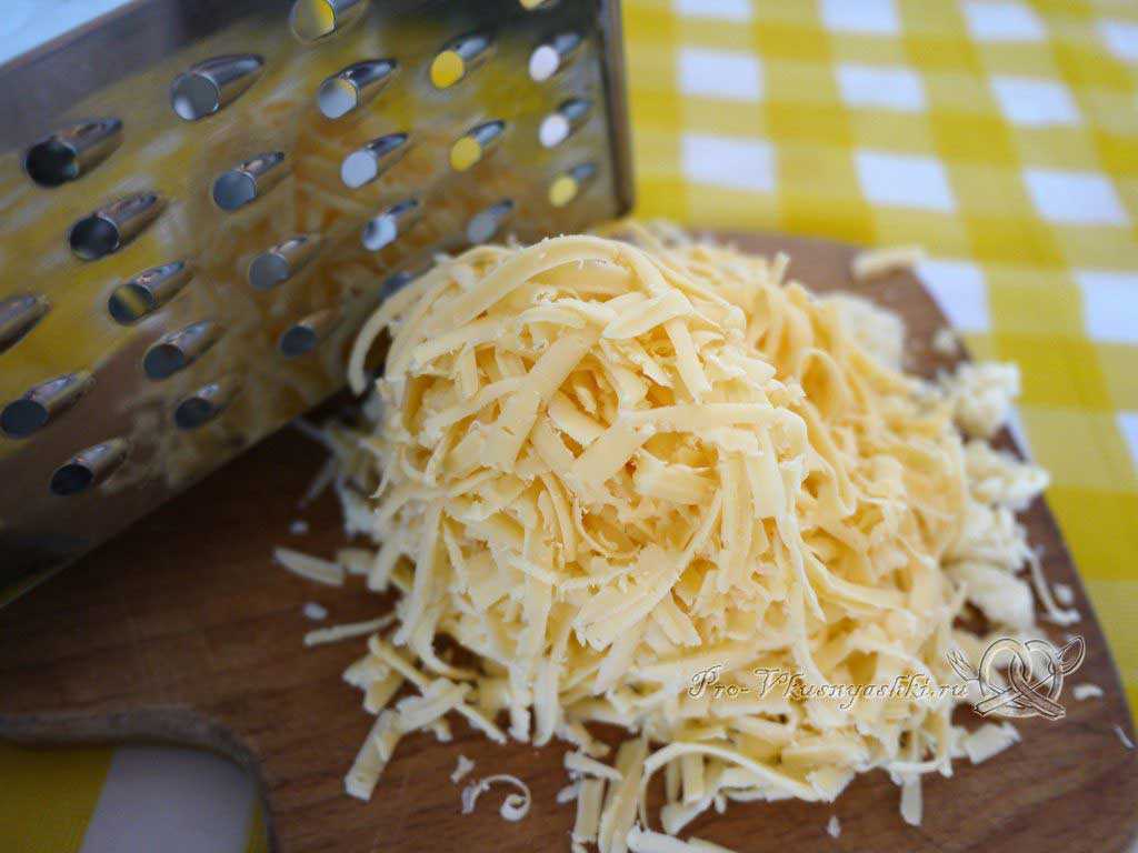 Твердый сыр измельчаем на крупной терке.