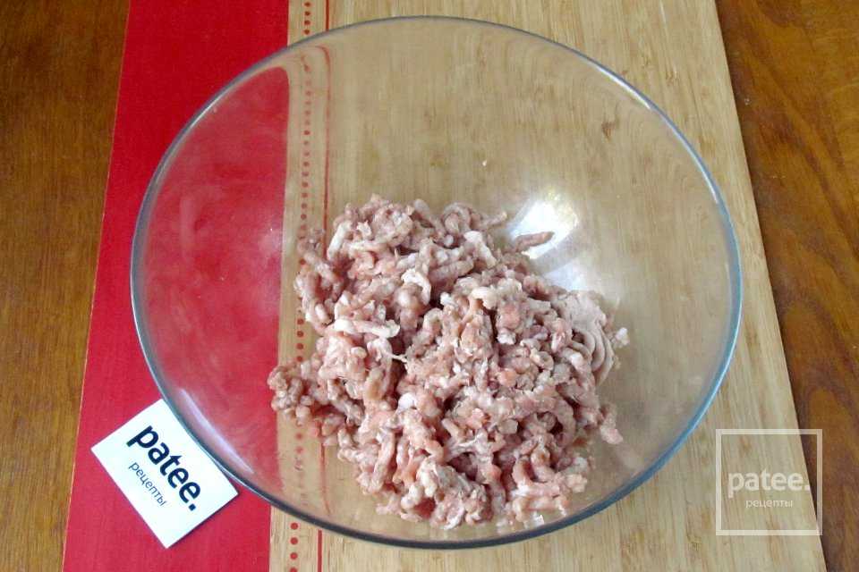 В миску перекладываем свиной фарш. Можно использовать любой мясной фарш, не обязательно свиной. Это может быть фарш смешанный, куриный, индюшиный, говяжий.