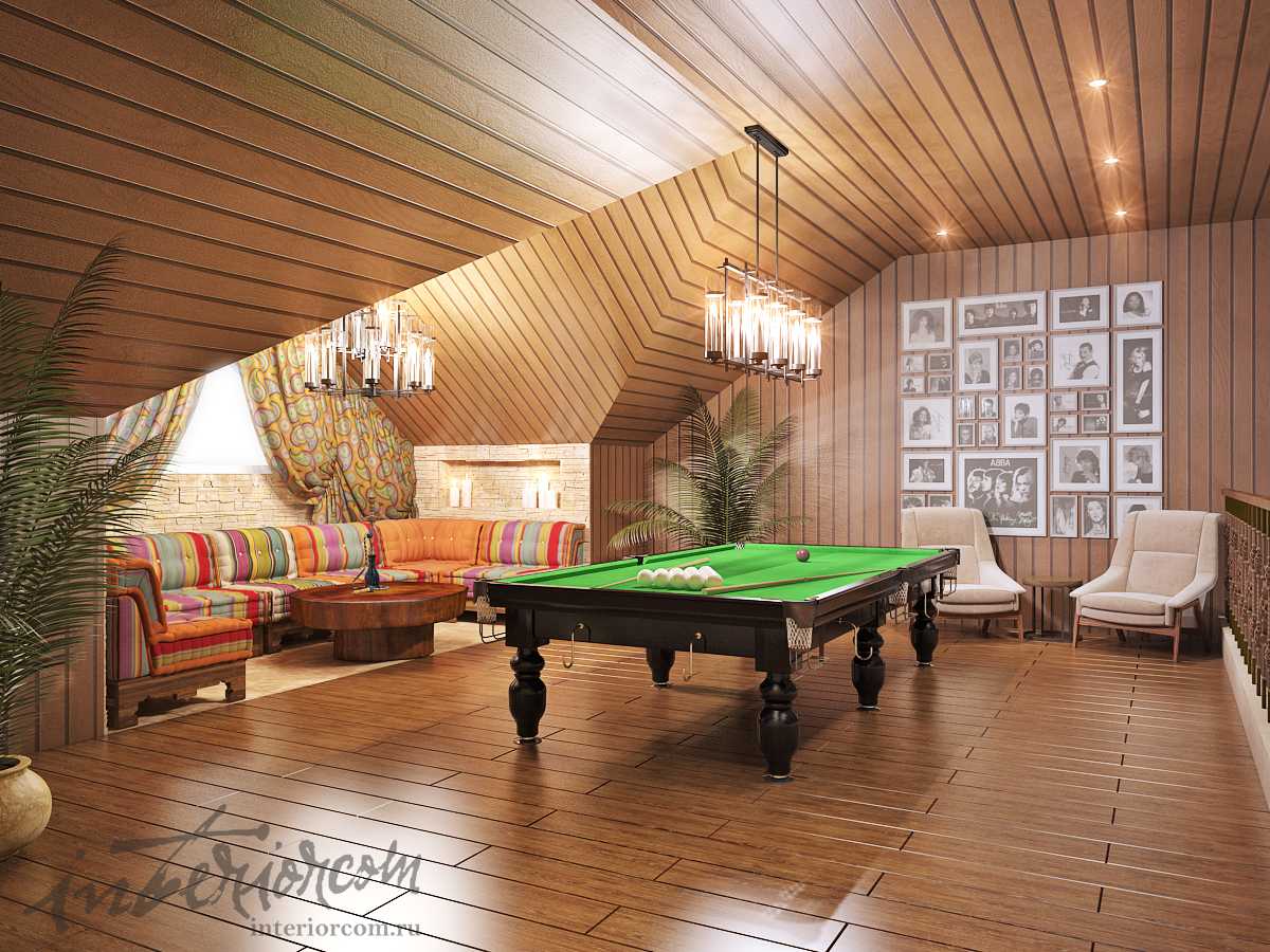 На фото: проект комнаты отдыха на мансарде дома, демонстрирующий смешение стилей.
