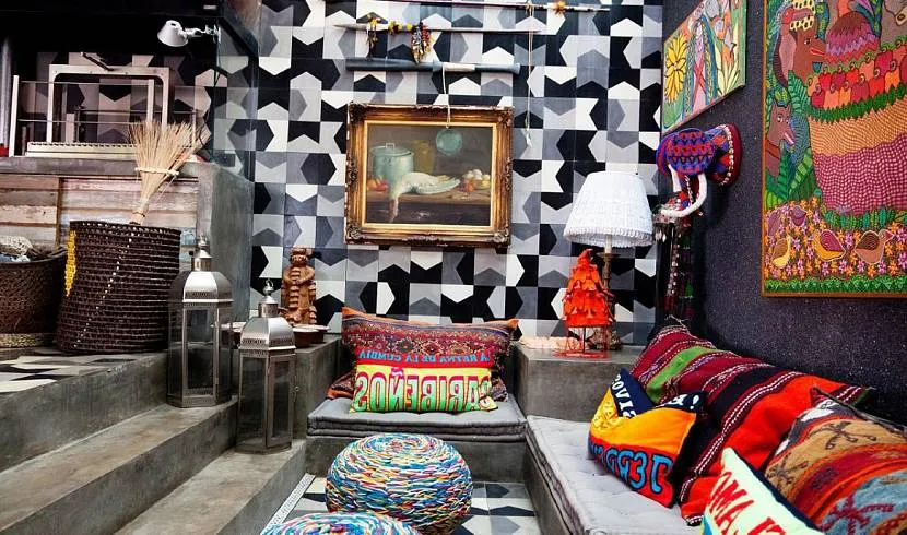 Экстравагантный и безумно интересный фьюжн предоставляет огромный простор для творчества и самовыражения. Бытует мнение, что этот стиль зародился стихийно с появлением моды на путешествия и приобретение памятных сувениров в каждом посещённом уголке планеты. Отсюда берёт начало гармоничное смешение западных и восточных стилей. Казалось бы, такое сочетание может выглядеть крайне нелепо, но опытные дизайнеры успешно справляются даже с такой сложной задачей.