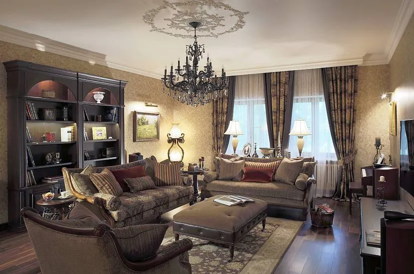 7. Ампир (1840-1890). Парадный, торжественный, военно-триумфальный стиль позднего классицизма, подражающий шику и роскоши Римской империи. В дизайне интерьера используется богатый декор с мотивами военной эмблематики.