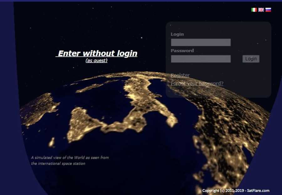 Англоязычный сайт satflare.com показывает, как выглядит Земля с орбиты МКС. В том числе здесь можно увидеть движение спутников от SpaceX в реальном времени на 2D- и 3D-картах.