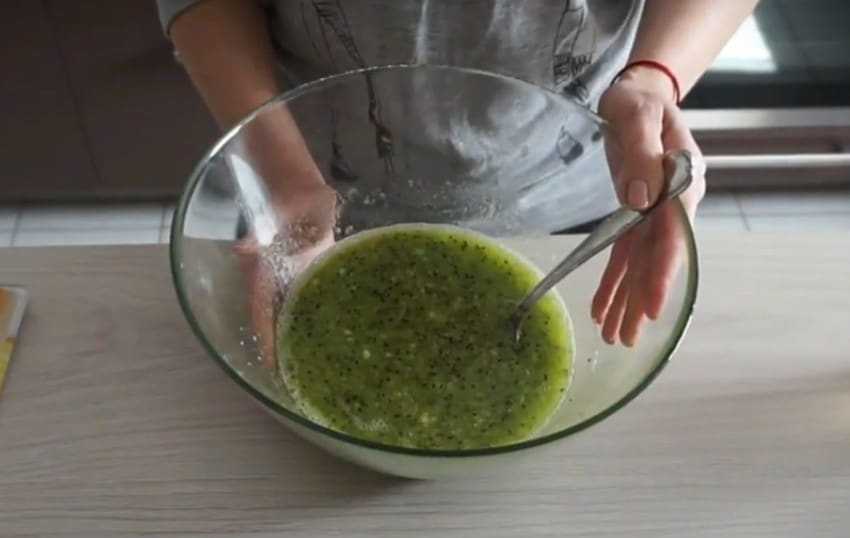- Сюда же добавить желатиновый раствор и перемешать. Масса должна немного остыть.