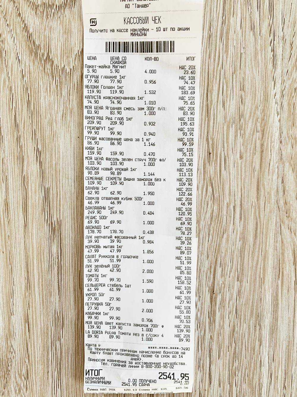 Для сравнения: потребительская корзина в среднем по России стоит 10 842 Р на одного трудоспособного человека в месяц и 9959 Р на ребенка. При этом продукты занимают там 50% стоимости. Значит, продукты на семью, сходную с нашей по составу, в среднем по стране будут стоить 5200 Р в неделю.