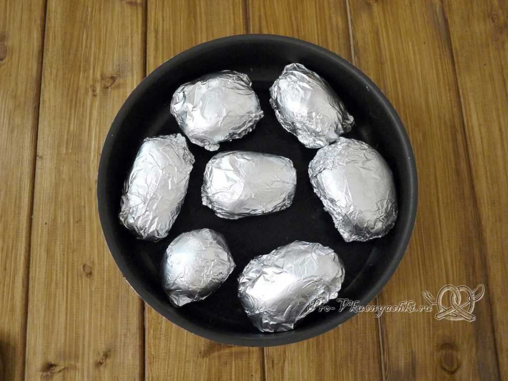 - Заворачиваем каждый клубень в фольгу и отправляем в печь на час, температура 180°С.