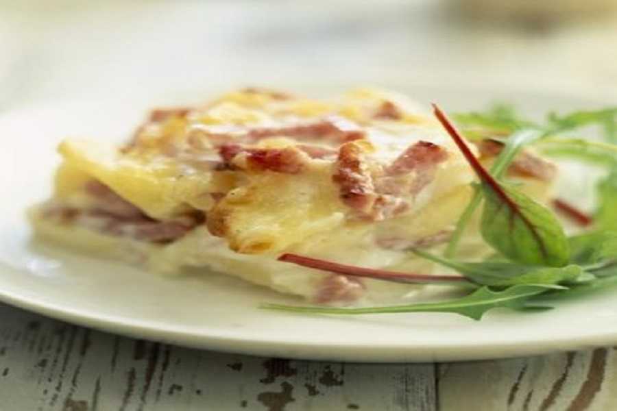 Упрощенный вариант приготовления картошки по-французски – сделать ее с фаршем. Фарш можно использовать любой, на свое усмотрение. Слабое место в таком блюде – подгорающая сверху корочка.