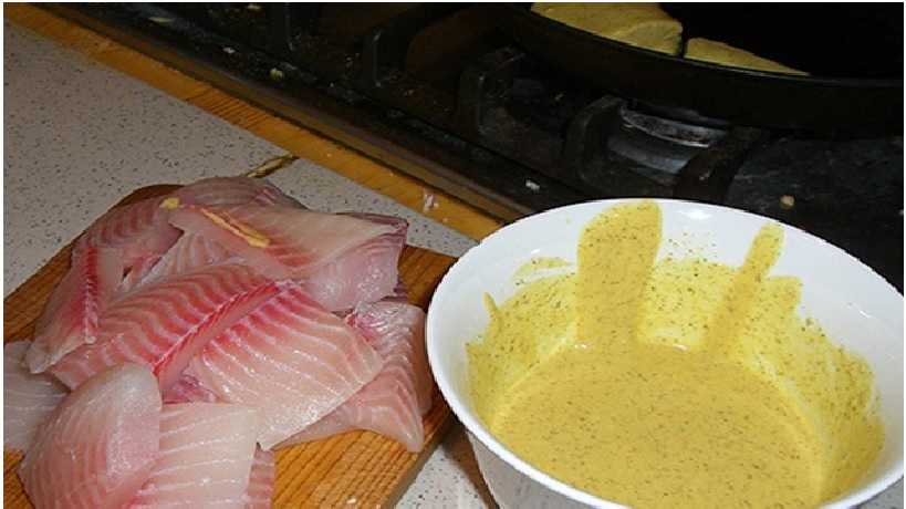 Масса еще раз хорошо взбивается венчиком. В полученную смесь нужно обмакнуть каждый рыбный кусочек. После этого рыбу можно отправлять готовиться на разогретую сковородку.