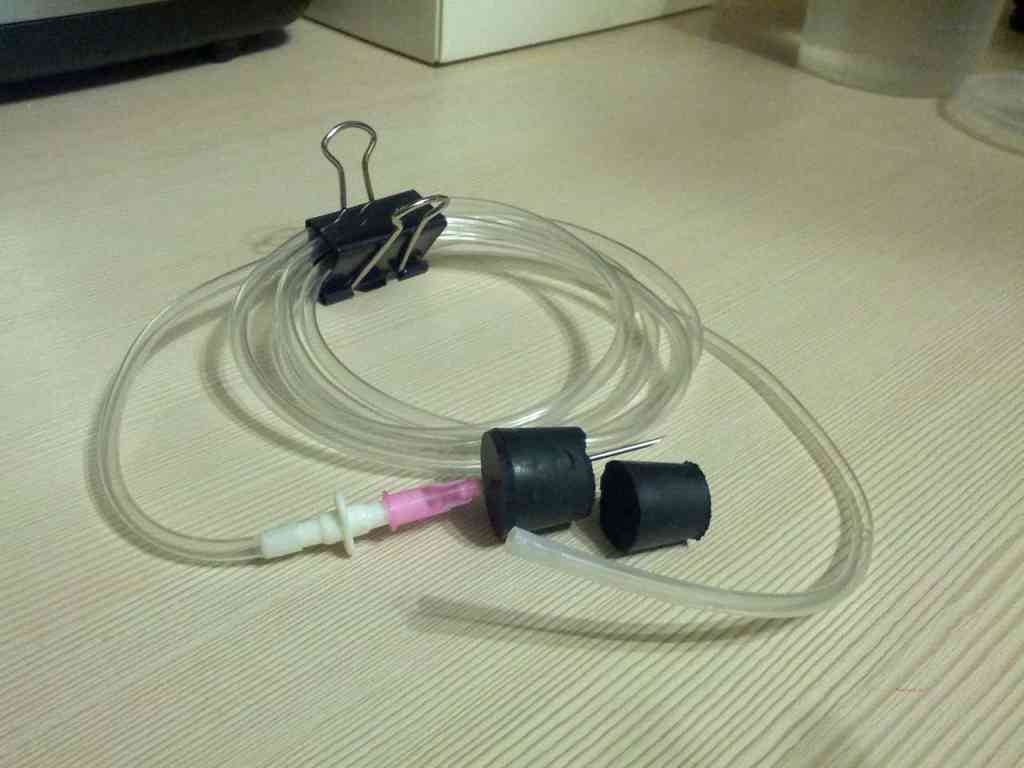 Вместо перчатки можно использовать специальное приспособление, которое изготавливают из пластмассовой крышки, бутылки с водой и иглы с трубочкой от капельницы.