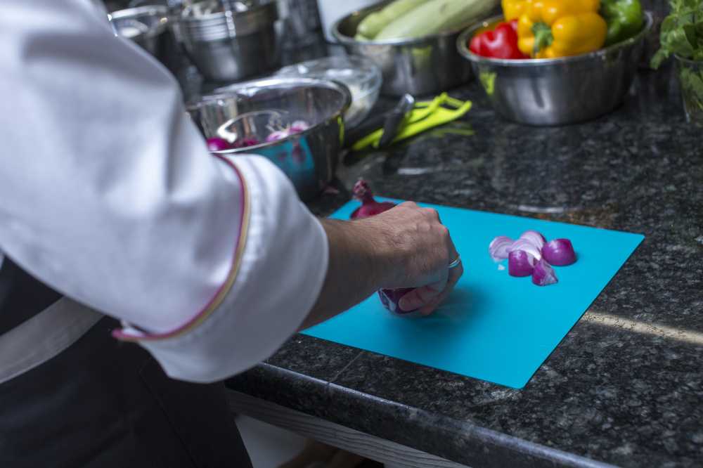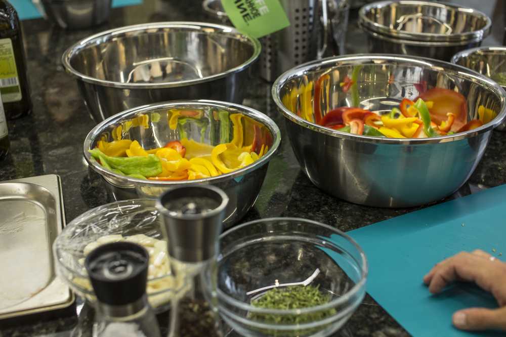 Цукини можно не чистить от кожуры. Перец можно взять и обычный зеленый, но разноцветный сделает блюдо более красивым. То же самое и с луком. Кроме того, красный лук более нежный.