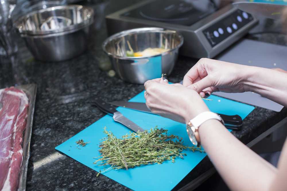 Говядину обжариваем по 3 минуты с двух сторон при температуре 60 градусов, добиваясь состояния слабой прожарки (медиум)