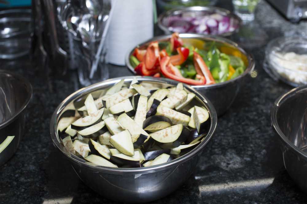 Ну тут, думаю, никому ничего объяснять не надо. Моем как обычно. Перец очищаем от семян. Баклажаны вымачивать не надо.