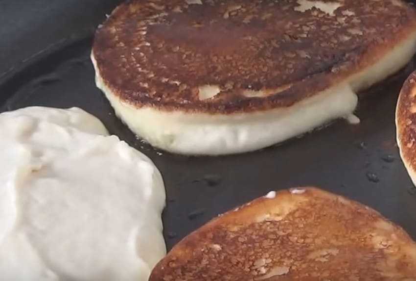 - Пожарить оладьи с двух сторон по 2-3 минуты.
