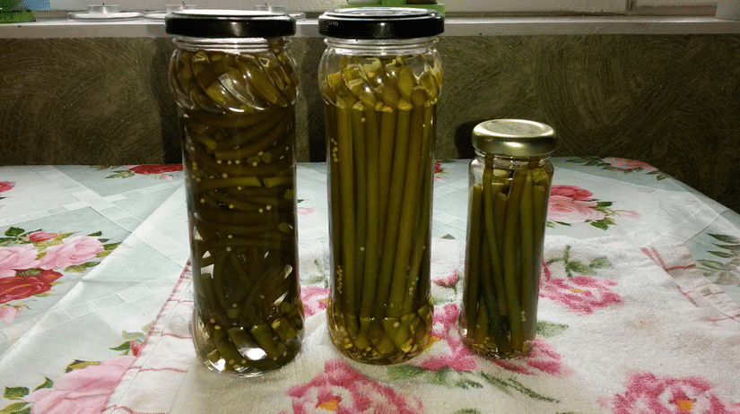 - Плотно разложить стрелки чеснока, и залить банки горячей водой.