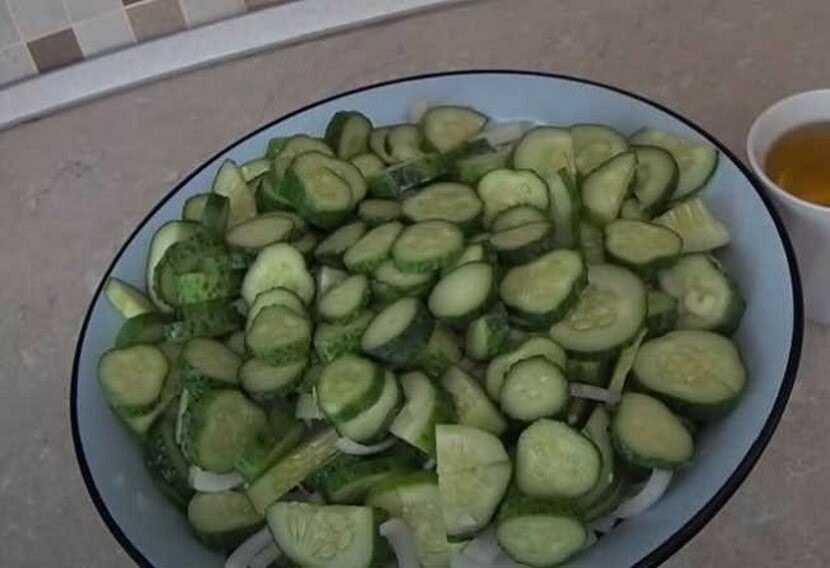 Вкусный салат из огурцов и помидоров на зиму с луком и растительным маслом