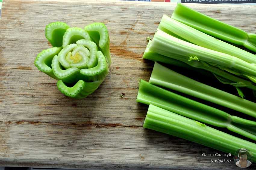 Сочные черешки сельдерея используются для приготовления различных блюд для похудения: напитков, салатов, гарниров, первых блюд.