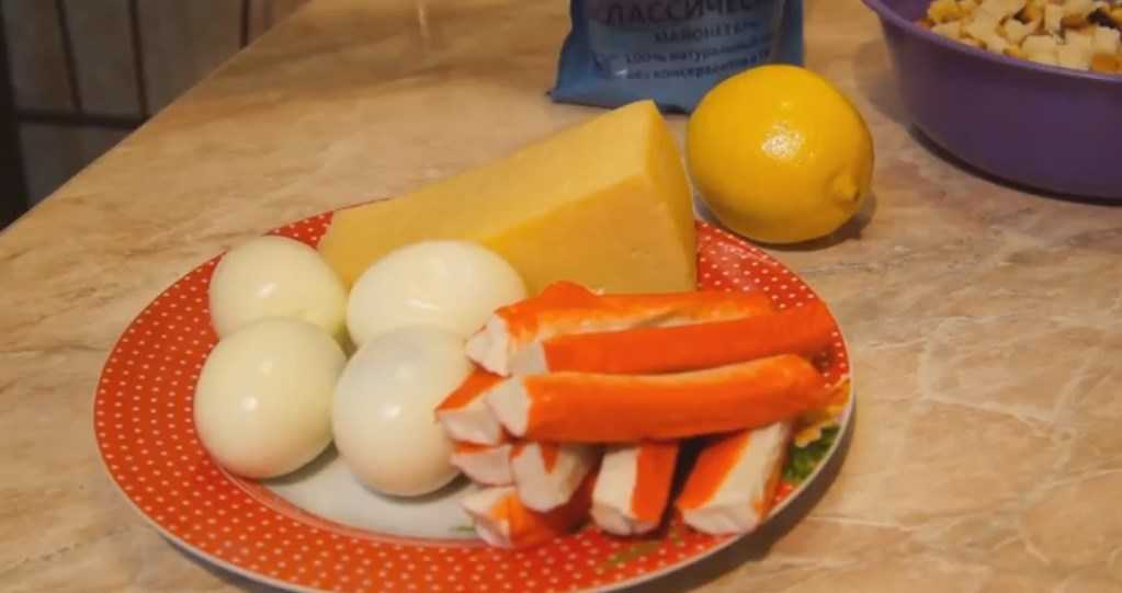 Как приготовить салат с кириешками и крабовыми палочками?
