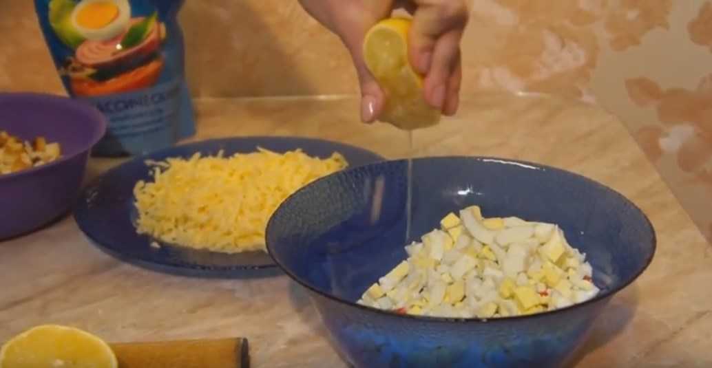 Можно не выдавливать лимон в общую массу, а смешать с ним майонез. Это уж кому как больше нравится.