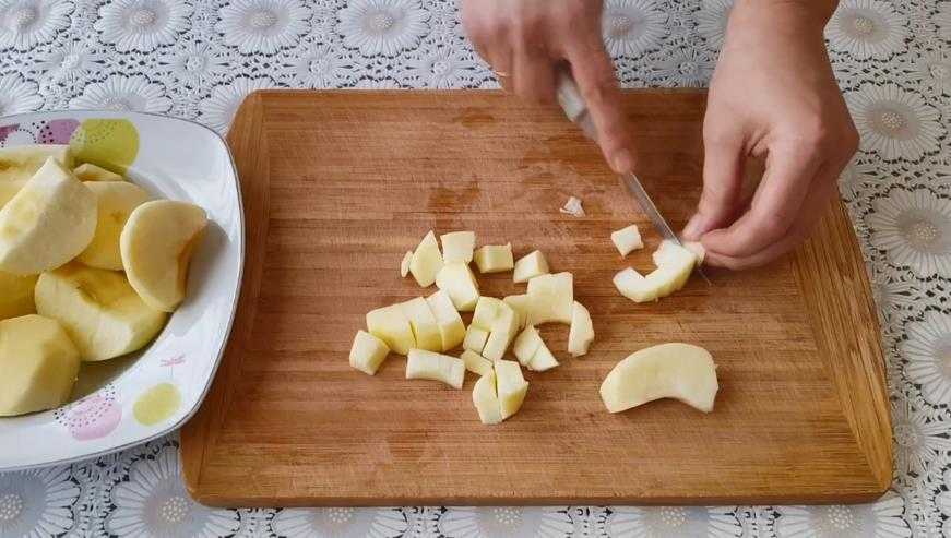 - Очищенные яблоки нарезать нетолстыми дольками.