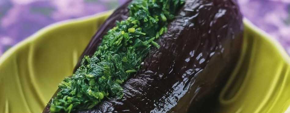 Баклажаны следует брать ровные, не изогнутые. Они не должны быть слишком толстыми или старыми с большим количеством семечек. Зелень можно взять одной разновидности или смешать укроп с петрушкой и кинзой.