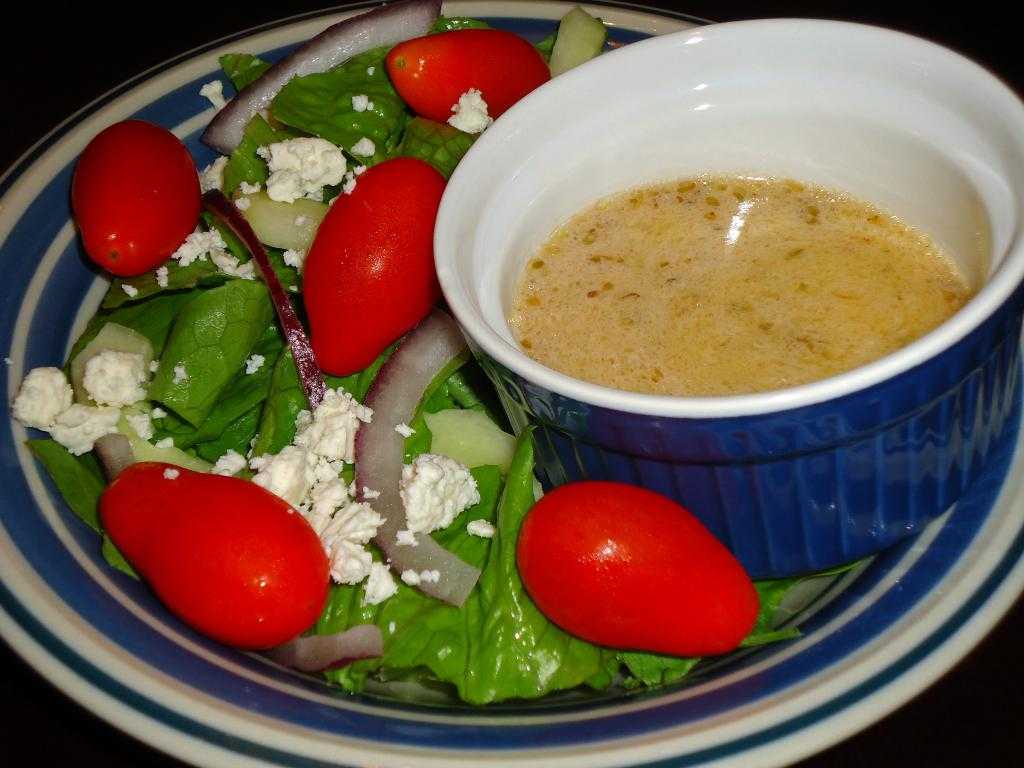 Греческий салат своим оригинальным вкусом во многом обязан именно заправке. Интересно, что соус не имеет единого рецепта. Греки за основу берут оливковое масло (3 ст.л.), в которое добавляют другие продукты по вкусу. Но самые распространенные следующие добавки: сладкая горчица (0,5 ч.л.), чеснок (один зубчик), лимонный сок (1 ст.л.), орегано, базилик, соль и черный молотый перец.