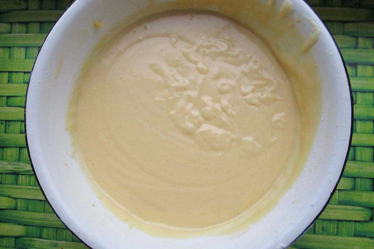 - В небольшой миске взбить желтки и сахар. Туда же добавить муку, ваниль и молоко, продолжая растирать. Масса должна быть без комочков.