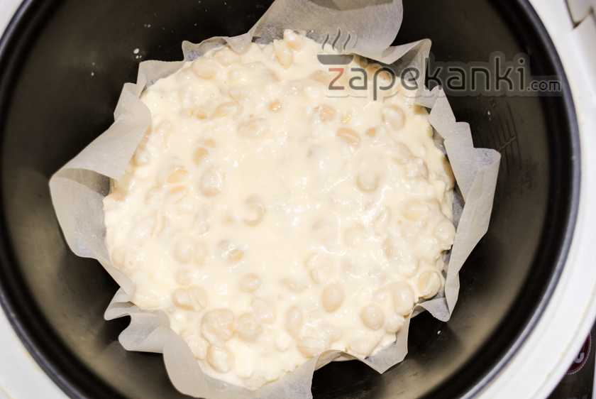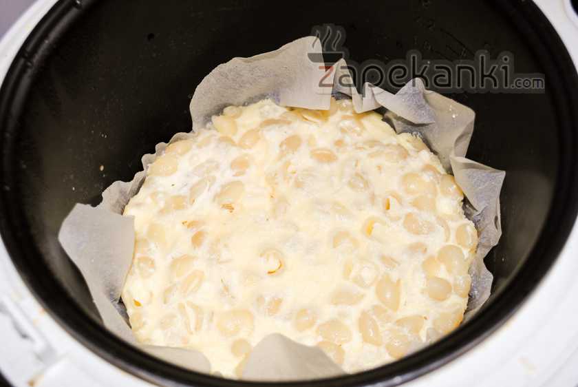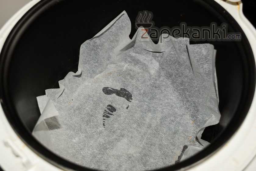 8. Форму мультиварки можно застелить пергаментной бумагой, а можно смазать сливочным маслом и присыпать манкой. Запеканка из макарон с творогом в мультиварке очень легко извлекается в любом случае.