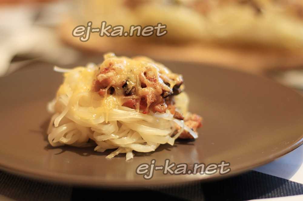 Рецепт 3, пошаговый: гнезда из макарон с фаршем и сыром