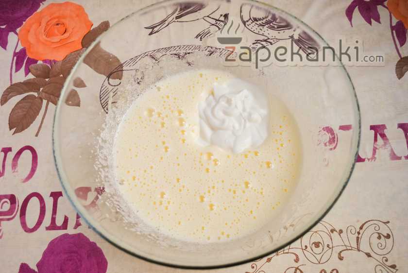 4. Добавить в яичную смесь сметану и снова перемешать.