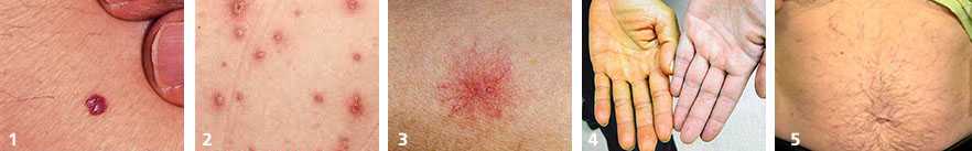 - сосудистая звездочка (т.н. спайдеры) — частые признаки гепатита, цирроза, жирового гепатоза, акогольной болезни печени (фото №3)
