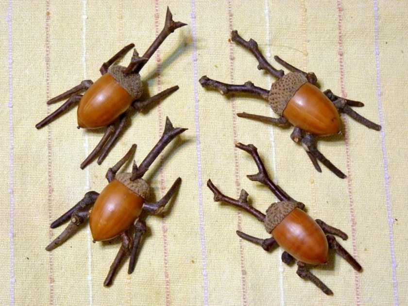 Собирают жёлуди обычно в сентябре. Выбирайте только твёрдые, гладкие плоды, без дырочек – иначе личинки насекомых, путешествую из желудя в желудь, испортят все заготовленные вами запасы. Чем больше различных желудей (круглых и продолговатых, больших и маленьких) вы наберёте, тем разнообразнее получатся ваши поделки. Не забудьте собрать желудиные «шапочки».