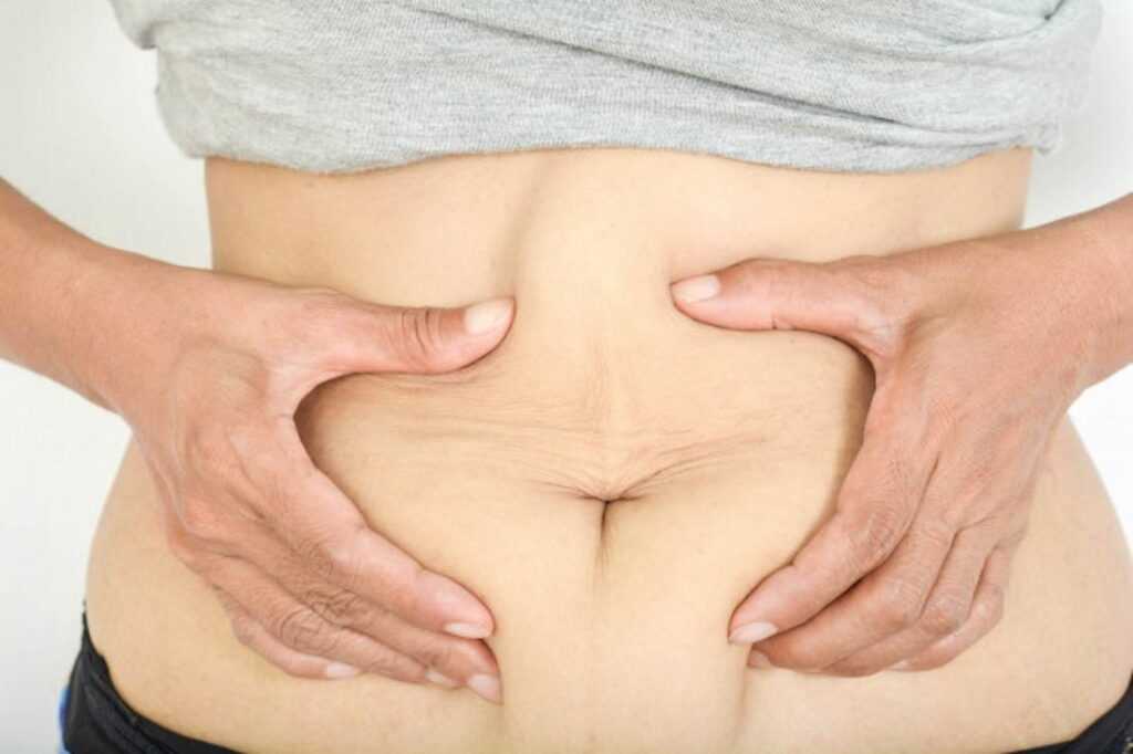 При данном типе ожирения жировые отложения образуются на внутренних органах, преимущественно в брюшной полости, поэтому живот выдается вперед.