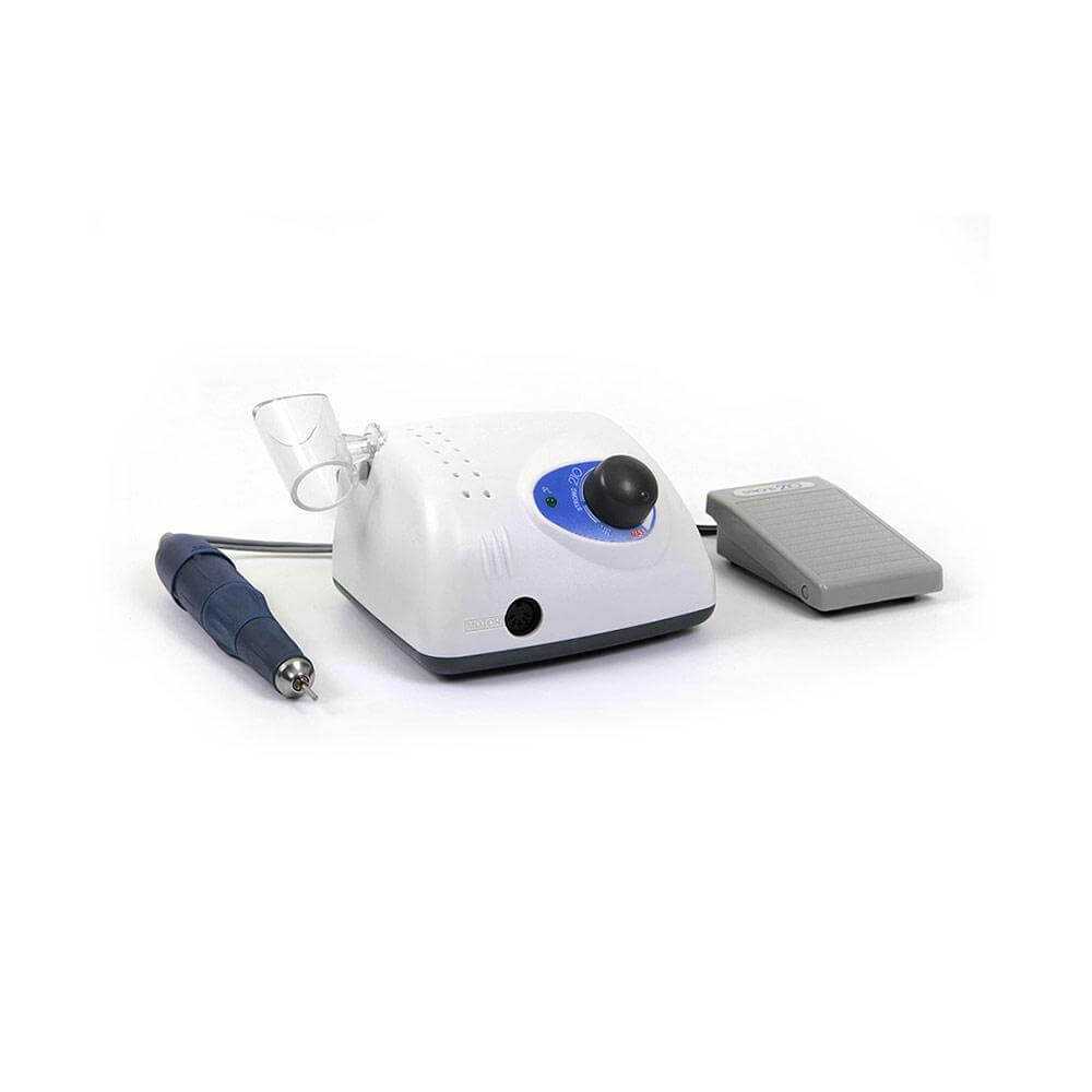Аппарат для маникюра и педикюра Strong 90/102L. В компактном корпусе помещен двигатель мощностью 64 Вт. Он обеспечивает скорость вращения насадок до 35000 оборотов в минуту. На панели расположен регулятор числа оборотов, тумблер включения и кнопка реверса. Металлический корпус надежно защищен от ударов. В магазинах можно найти модификации модели с педалью в комплекте или без нее.