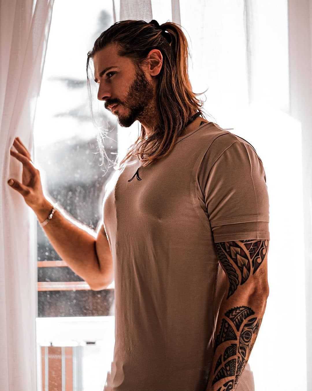 Мужские модели на прядки средней длины требуют достаточно тщательного ухода, потому как длинные пряди быстро загрязняются, становятся сальными. Будьте готовы к тому, что придется за ними ухаживать, точно так же, как ухаживают за ними девушки. Вам понадобится шампунь-бальзам, маски для локонов, а также специальные средства для стайлинга, которые будут облегчать процесс укладки. Придется также обзавестись феном.
