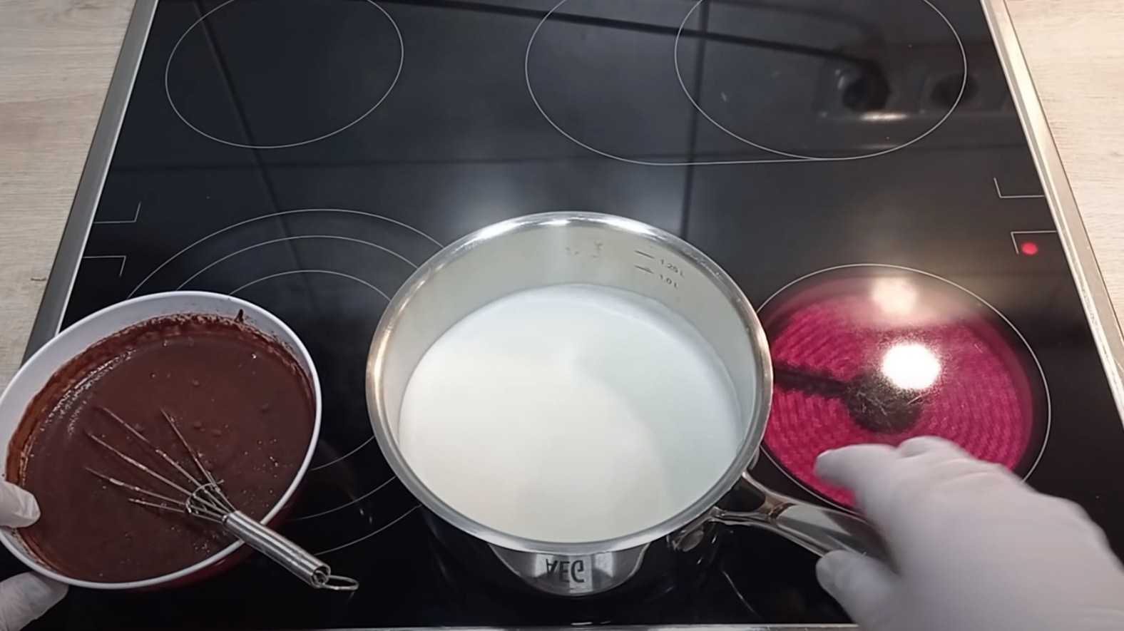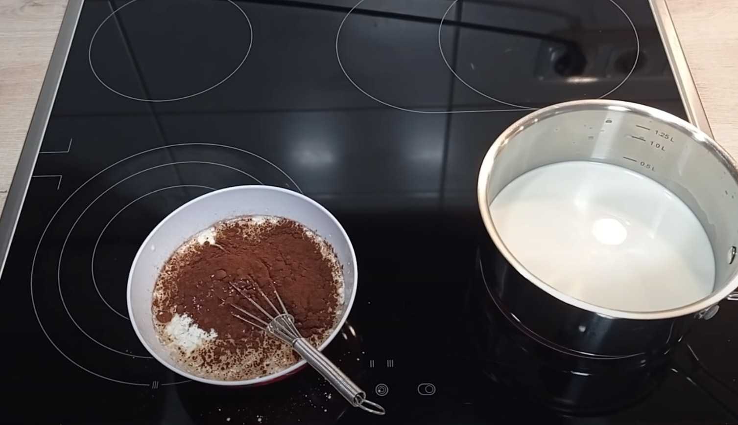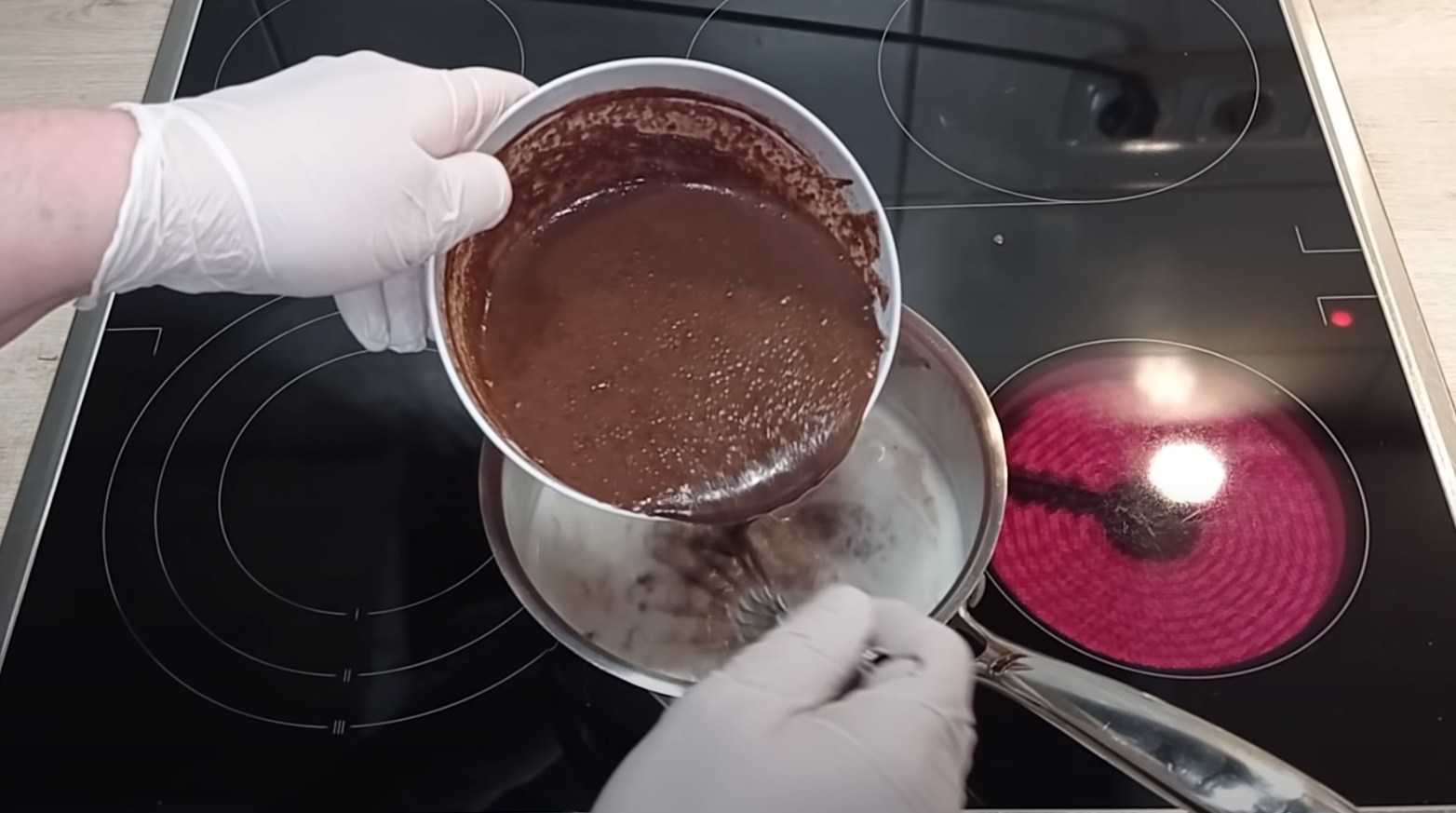 При постоянном помешивании вводим шоколадную смесь в горячее молоко.