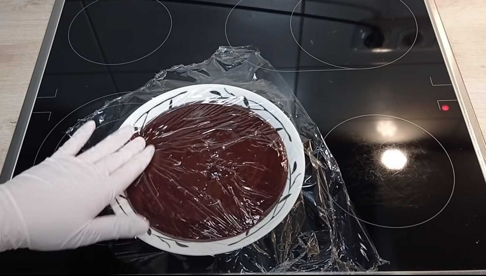 - Когда крем загустеет, снять с плиты и остудить при комнатной температуре. При этом обязательно накрыть посуду плёнкой, чтобы масса не заветрилась.
