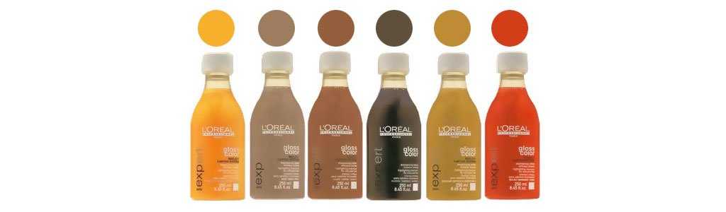 Оттеночные шампуни представлены в разных цветах, включая все оттенки коричневого и черный.