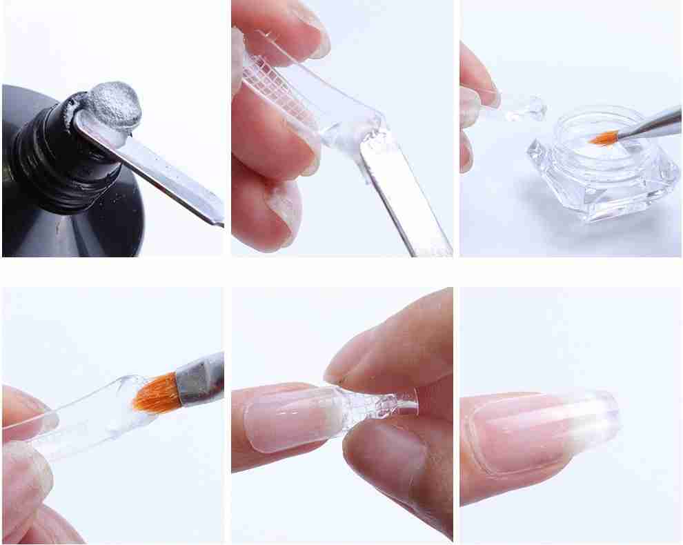 Наращивание ногтей акрилом в домашних условиях, происходит качественной кистью из ворса ценных пород пушных зверьков. Важным пунктом при отборе кисти является упругий пучок и острый кончик. Специальная кисть состоит из тщательно отобранных волосков, которую скрепляют клеем и металлическим ободком.