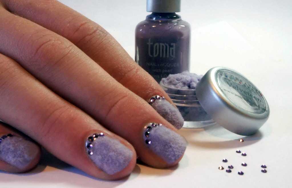 Для такого вида нэйл-арта понадобится цветная акриловая пудра. На полках современных магазинов можно отыскать любые ее разновидности, можно выбрать как цвет, так и консистенцию. Отдельным видом считается пудра с блестками, которая расширяет возможности дизайна. C помощью цветной пудры можно создавать самые невероятные рисунки или полностью покрывать ноготь, создавая эффект бархатного маникюра. Два этих вида дизайна мы разберем подробнее. Итак, как пользоваться акриловой пудрой для ногтей поэтапно для создания эффекта бархатного ногтя: