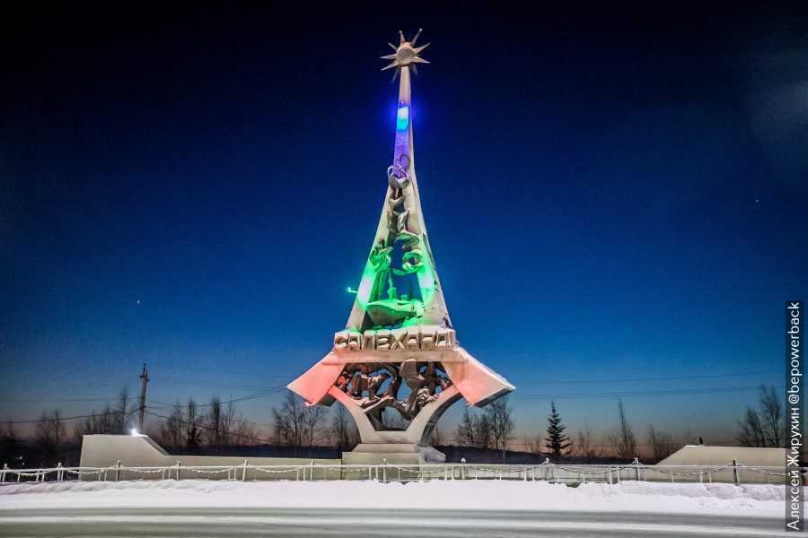 И стелу «Полярная звезда» на первом перекрестке — символ жизни северян, живущих под полярной звездой.