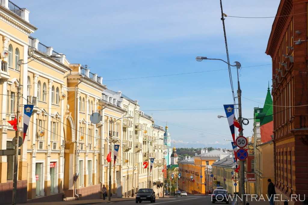 Оглянувшись назад, наблюдаем прекрасный вид Большой Советской улицы с Успенским собором, возвышающимся на холме.