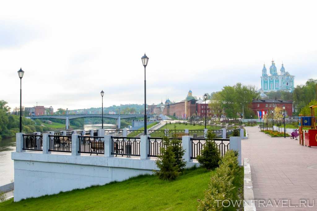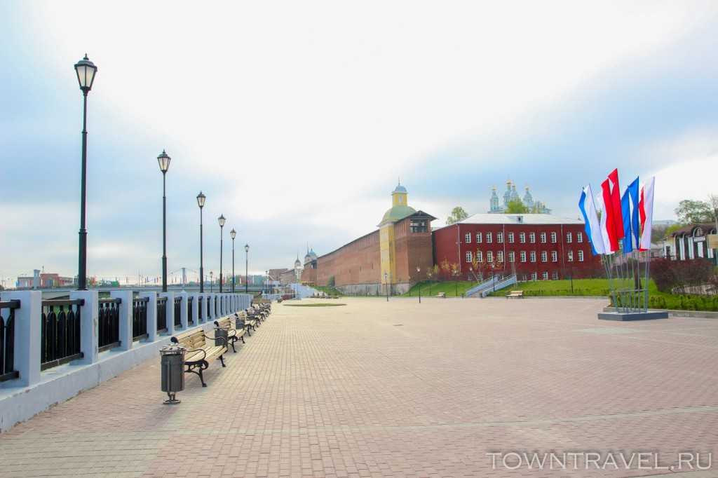 На одном участке с набережной находится неподражаемая Смоленская крепость с единственной в своем роде Пятницкой башней. Кроме того, отсюда открывается прекрасный вид на величественный Успенский собор и Нижне-Никольский храмовый комплекс.