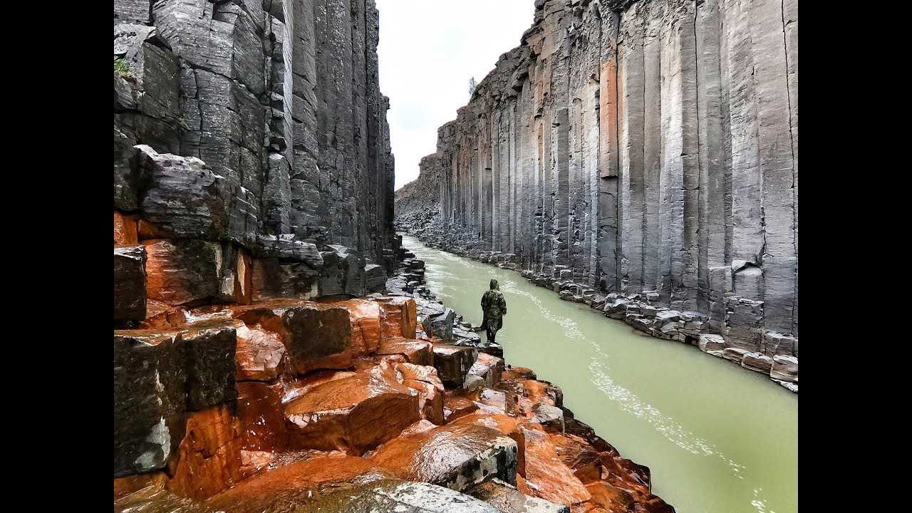 Расположен водопад на реке Хвитау, которая является самой длинной в Исландии. Ее воды при попадании в расщелины скал низвергаются вниз с 70-метровой высоты. При паводке потоки воды становятся бешеными и ревущими, за что Гюдльфосс по праву называют самым мощным и громким в Европе. Основное отличие – 2 каскада, располагающиеся перпендикулярно, — вода по ним спускается ступенями высотой 11 и 21 м.