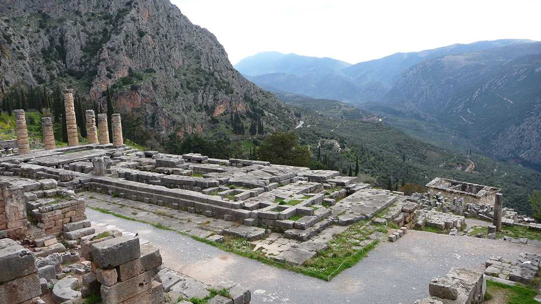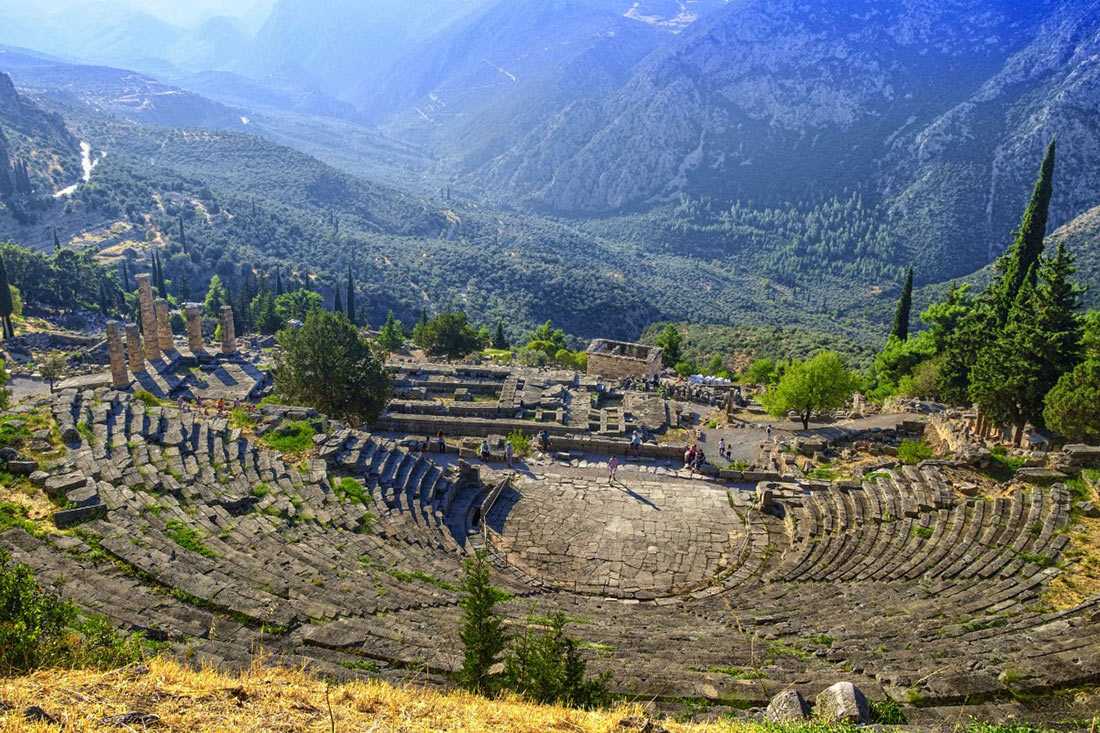 Дельфы. Находятся в центральной Греции у подножия горы Парнас. Там можно посетить храм Аполлона и древний Дельфийский театр.