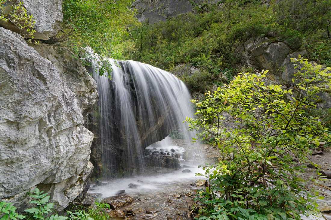 Живописная тропа тянется параллельно небольшой «говорливой» речки, воды которой чуть выше и срываются с шумом с горного выступа. На полпути путешественников ждет небольшой, но приятный сюрприз – родник с очень чистой водой.